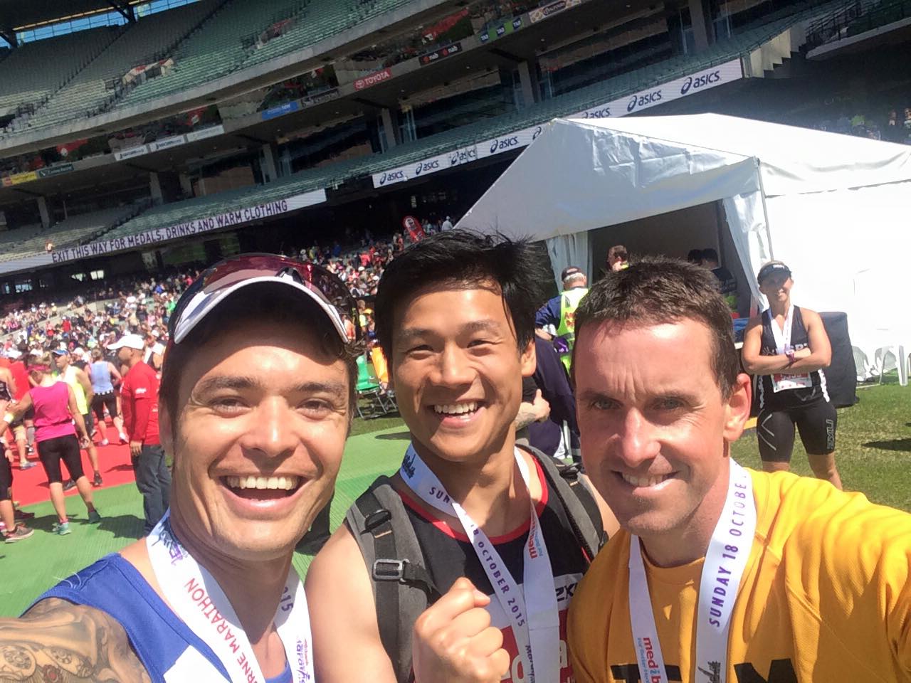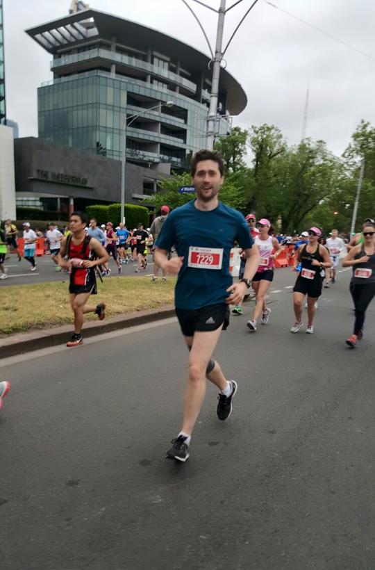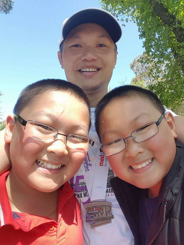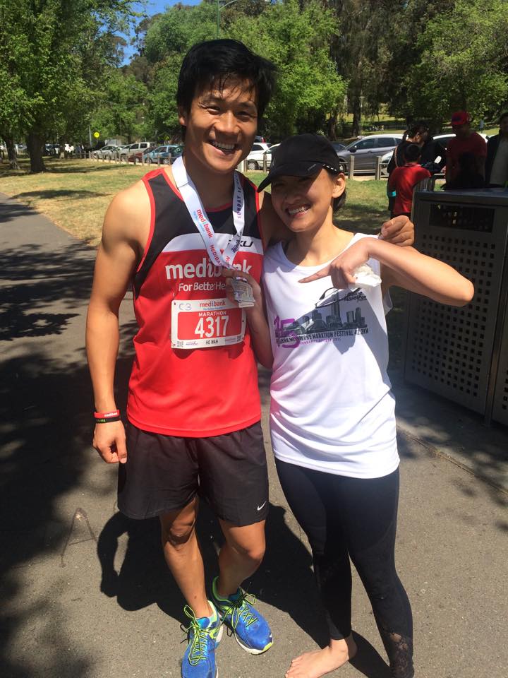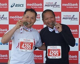 His improvements in fitness culminated in him running the 2014 Melbourne Marathon with his friend Huy.